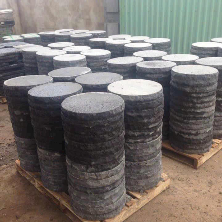 Đá thường được khai thác từ các mỏ đá tại Đồng Nai, Đắk Nông…và gia công thành các tấm có đường kính từ 30cm – 60cm, độ dày phổ biến 3–5cm.