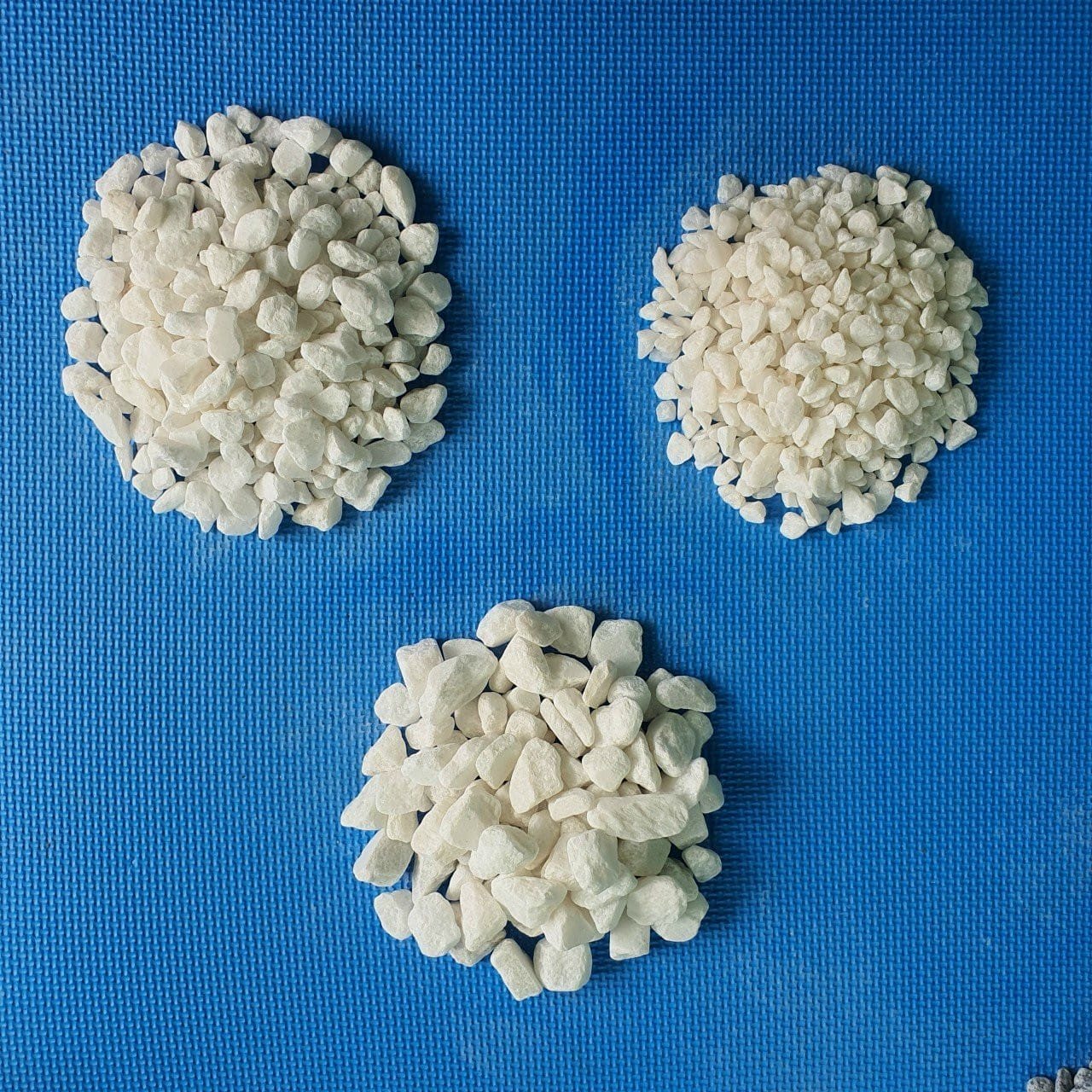 Sỏi trắng quay được sản xuất 100% từ nguyên liệu đá tự nhiên được khai thác từ các núi đá vôi sau đó được chế tác với đầy đủ các kích thước.
